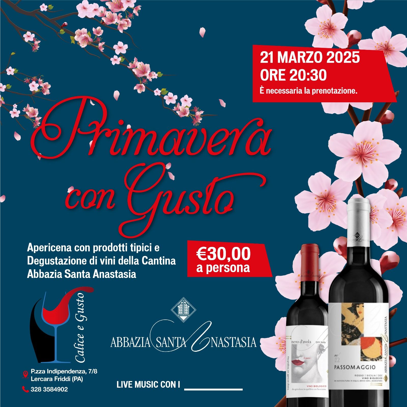 Se ami il vino e vuoi vivere un’esperienza coinvolgente, Calice e Gusto è il luogo perfetto per te. Segui i nostri aggiornamenti sui social o contattaci per conoscere il calendario dei prossimi appuntamenti.